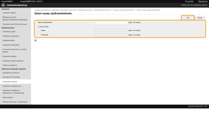 Kliknij [Zmień nazwę użytkownika/hasło].