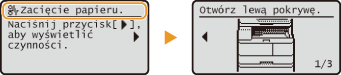 Podczas usuwania zakleszczonego papieru nie wolno wyłączać urządzeniaPo wyłączeniu urządzenia dane, które miały zostać wydrukowane, zostają utracone. Należy zachować szczególną ostrożność w przypadku odbioru faksów.