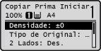, aparece o ecrã principal da função selecionada. O ecrã principal de cópia é mostrado abaixo como exemplo.