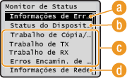 Apresenta o estado da máquina (por exemplo, a quantidade de papel ou toner restante).