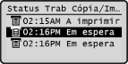 Apresenta o estado atual do item selecionado. O ecrã <Status Trab Cópia/Impr> é mostrado abaixo como exemplo.