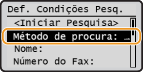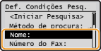 Nomes de pessoas, números de fax, endereços de correio eletrónico, nomes de organizações e nomes de departamentos são os critérios disponíveis para procurar destinos.