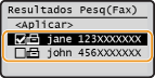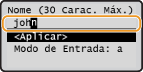 Se aparecer o ecrã de autenticação quando iniciar a procura, introduza o nome de utilizador e a palavra-passe gravados no servidor LDAP, selecione <<Aplicar>> e prima . Pode introduzir o nome de utilizador e a password da máquina ou seus, dependendo da definição (Gravar servidores LDAP). Se tiver alguma dúvida, consulte o administrador de rede.