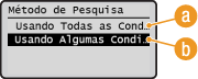 Introduza a palavra-chave de procura utilizando as teclas numéricas, selecione <Aplicar> e prima .