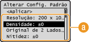 <Configurações de Fax> <Configurações de Função TX> <Alterar Configurações Padrão> Selecione a definição Altere o valor predefinido do item selecionado <Aplicar>