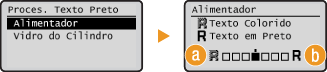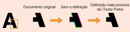 Quando digitalizar documentos a cores, pode ajustar o texto preto ou com tons de preto, para que se aproxime o mais possível do documento original; também pode ajustar a nitidez do texto preto para que seja mais fácil de ler. Pode efetuar definições separadas para o alimentador e para o vidro de exposição separadamente.