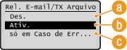 Pode imprimir um relatório para verificar o resultado de uma transmissão enviada por correio eletrónico ou guardada num servidor de ficheiros. O relatório pode ser impresso sempre que é concluída uma transmissão ou apenas quando ocorrer um erro de envio.