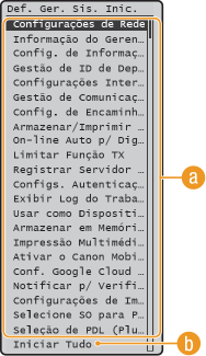 Lista dos menus de definição). Para algumas definições, é necessário reinicializar a máquina para completar a inicialização.