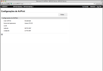 Introduza o nome e o local de instalação para o ajudar a identificar a máquina quando utilizar o dispositivo Apple. Essas informações são úteis no caso de ter mais de uma impressora com AirPrint.