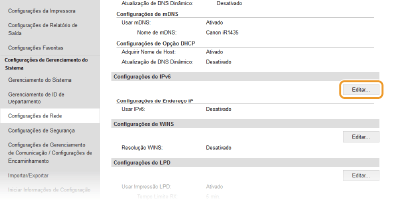 Clique em [Editar...] em [Configurações de IPv6].