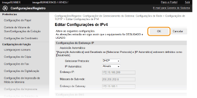Clique em [Configurações de Rede]  [Configurações de TCP/IP].