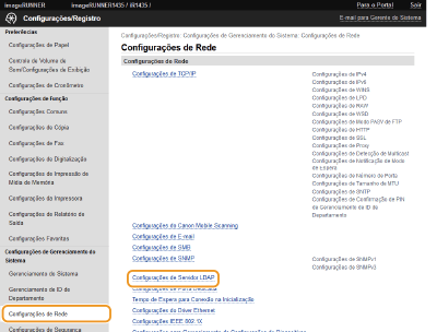 Se a rede tiver um servidor LDAP integrado, pode procurar números de fax ou endereços de correio eletrónico no servidor e especificá-los como destinos ou registá-los no livro de endereços. Pode registar um máximo de cinco servidores LDAP na máquina. Registar servidores LDAP através da IU Remota.
