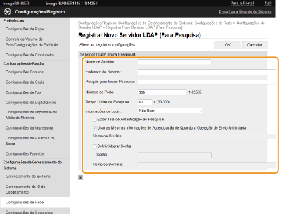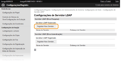 Clique em [Registrar Novo Servidor...] em [Servidor LDAP (Para Pesquisa)].