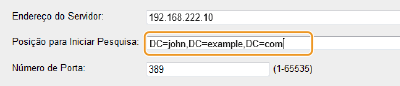 Para especificar o nó, introduza "DC=", seguido de um nome de anfitrião (uma cadeia de carateres delimitada por pontos no nome de domínio do Active Directory) e separe cada uma das entradas com uma vírgula. Por exemplo, se o nome de domínio for "john.exemplo.com", introduza "DC=john,DC=exemplo,DC=com".