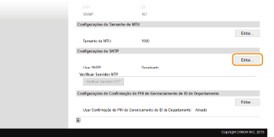 O SNTP da máquina é compatível com servidores NTP (versão 3) e SNTP (versões 3 e 4).