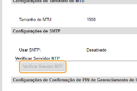 [Configurações de Rede] [Configurações de TCP/IP] e clique [Verificar Servidor NTP] em [Configurações de SNTP]. Se a ligação tiver sido estabelecida corretamente, é apresentado o resultado mostrado abaixo. Tenha em atenção que esta operação não ajusta o relógio do sistema.![]() |