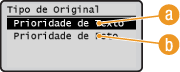 para selecionar <Prioridade de Foto> ou <Prioridade de Texto> e prima