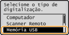 .Os dados digitalizados são guardados no dispositivo de memória USB.
