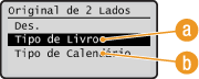 Selecione <Tipo de Livro> ou <Tipo de Calendário>