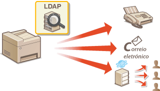 O Envio autorizado é uma função de segurança que utiliza um servidor LDAP da rede para evitar mensagens de correio eletrónico, ficheiros ou faxes não autorizados. Com esta função, os utilizadores têm de autenticar-se com os respetivos dados de início de sessão, que estão gravados no servidor LDAP, antes de enviarem documentos. O Envio autorizado também permite limitar o envio de documentos apenas para destinos gravados ou proibir completamente o envio de documentos pelos utilizadores.