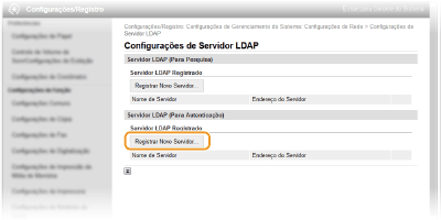 Clique em [Registrar Novo Servidor...] em [Servidor LDAP (Para Autenticação)].