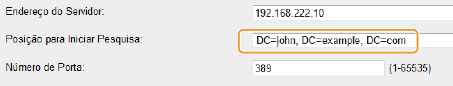 Para especificar o nó, introduza "DC=", seguido de um nome de anfitrião (uma cadeia de carateres delimitada por pontos no nome de domínio do Active Directory) e separe cada uma das entradas com uma vírgula. Por exemplo, se o nome de domínio for "john.exemplo.com", introduza "DC=john,DC=exemplo,DC=com".