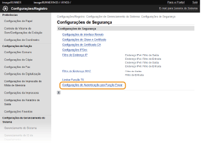 Clique em [Configurações de Segurança]