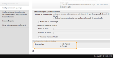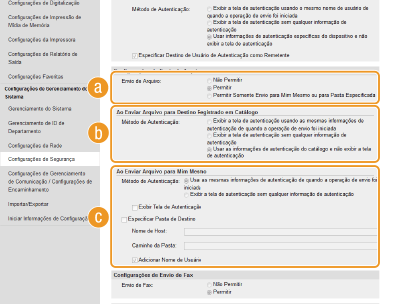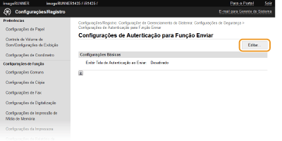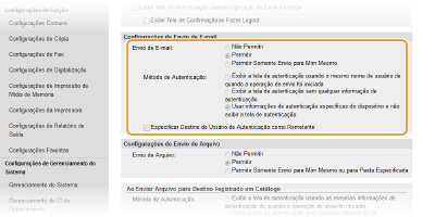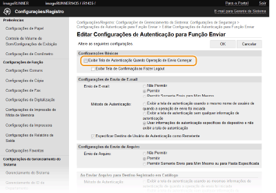 Selecione a caixa de verificação [Exibir Tela de Autenticação Quando Operação de Envio Começar] para ativar o Envio autorizado.