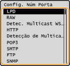 As portas funcionam como terminais de comunicação com outros dispositivos. De um modo geral, são utilizados números de porta convencionais para os principais protocolos, mas os dispositivos que utilizam esses números de porta ficam vulneráveis a ataques, uma vez que esses números são muito conhecidos. Para reforçar a segurança, o administrador de rede pode alterar os números das portas. Quando um número de porta é alterado, o novo número tem de ser partilhado com os dispositivos em comunicação, tais como computadores e servidores. Especifique as definições de número de porta consoante o ambiente de rede.