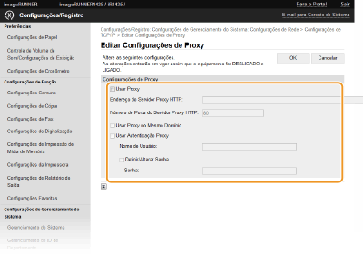 Selecione a caixa de verificação [Usar Proxy] e especifique as definições necessárias.