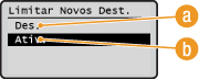 Para destinos de servidores de ficheiros, pode configurar a máquina para proibir os utilizadores de adicionarem novas entradas ao Livro de endereços ou de editarem entradas do Livro de endereços já existentes. Quando enviar documentos para servidores de ficheiros, não pode introduzir destinos com as teclas numéricas nem procurar destinos a partir de servidores LDAP, independentemente desta definição.