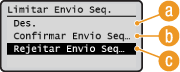 Selecione <Confirmar Envio Sequencial> ou <Rejeitar Envio Sequencial> e prima