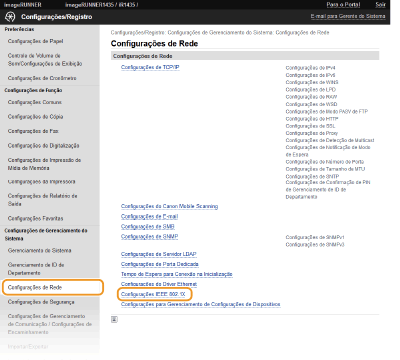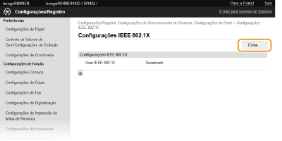 A máquina pode estabelecer ligação a uma rede 802.1X como um dispositivo-cliente. Uma rede 802.1X típica é constituída por um servidor RADIUS (servidor de autenticação), comutador de LAN (autenticador) e dispositivos-cliente com software de autenticação (requerentes). Se um dispositivo tentar estabelecer ligação à rede 802.1X, o dispositivo tem de passar por uma autenticação de utilizador para provar que a ligação é feita por um utilizador autorizado. Os dados de autenticação são enviados e verificados por um servidor RADIUS, que permite ou rejeita a comunicação destinada à rede, dependendo do resultado da autenticação. Se a autenticação falhar, um comutador de LAN bloqueia o acesso proveniente do exterior da rede.