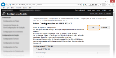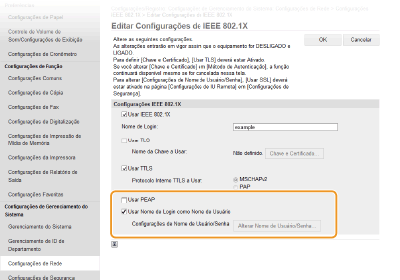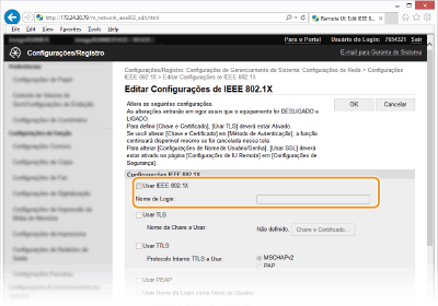 Selecione a caixa de verificação [Usar IEEE 802.1X], introduza o nome de início de sessão na caixa de texto [Nome de Login:] e especifique as definições necessárias.