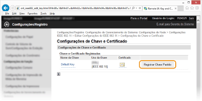 Clique em [Registrar Chave Padrão] à direita do par de chaves que pretende utilizar para a autenticação do cliente.