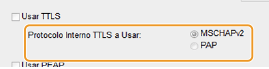 NOTA: Protocolo interno para TTLS Pode selecionar MSCHAPv2 ou PAP. Se pretender utilizar PAP, clique no botão de opção [PAP].