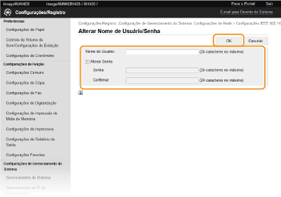 Para especificar um nome de utilizador diferente do nome de início de sessão, desmarque a caixa de verificação [Usar Nome de Login como Nome de Usuário]. Selecione a caixa de verificação se pretender utilizar o nome de início de sessão como nome de utilizador.