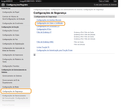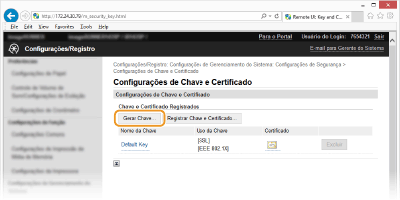 Não é possível apagar um par de chaves que esteja a ser utilizado para qualquer finalidade, como quando aparece a indicação "TLS" ou "IEEE 802.1X" abaixo de [Uso da Chave]. Nesse caso, desative a função ou substitua o par de chaves antes de o apagar.