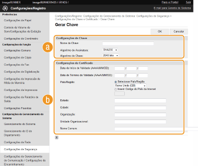 Não é possível selecionar [512 bits] para o comprimento da chave, se [SHA384] ou [SHA512] estiver selecionado para [Algoritmo de Assinatura:].
