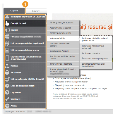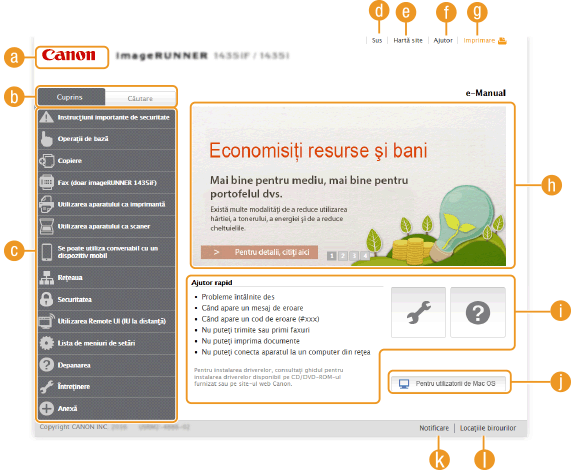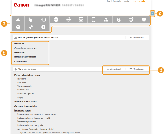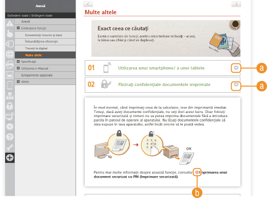 Clic pentru a afişa informaţiile despre cum să vizualizaţi Manual electronic, cum să realizaţi o căutare şi alte informaţii.