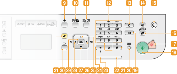 Apăsaţi pentru a activa copierea, faxul, scanarea sau funcţiile de imprimare USB. Funcţia de fax este disponibilă doar pentru imageRUNNER 1435iF.