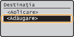 Repetaţi paşii 10 şi 11 până ce aţi înregistrat toate destinaţiile pe care doriţi să le înregistraţi, selectaţi <Aplicare> şi apăsaţi