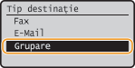 Mai multe destinaţii pot fi combinate într-un grup. După înregistrarea unui grup, puteţi adăuga sau şterge destinaţii în/din grupul respectiv.