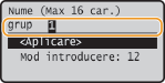 Introduceţi numele grupului cu tastele numerice, selectaţi <Aplicare> şi apăsaţi
