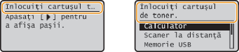 <Înloc. cartuş toner.>/<Înlocuiţi cartuşul de toner.>