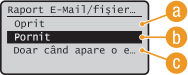 Puteţi imprima un raport pentru a verifica rezultatul unei transmiteri prin e-mail sau salvată pe un server de fişiere. Raportul poate fi imprimat fie de fiecare dată este definitivată o transmitere sau doar când apare o eroare la transmitere.