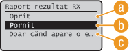 Puteţi imprima un raport pentru a verifica rezultatul primirii unui fax. Raportul poate fi imprimat fie de fiecare dată când primiţi un fax sau doar când apare o eroare la primire.