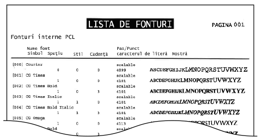 Puteţi imprima o listă pentru a verifica fonturile disponibile în modul PCL.