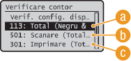 Selectaţi pentru a verifica numărul total al tuturor paginilor copiate şi imprimate, inclusiv imprimări ale faxurilor primite, rapoarte şi liste.