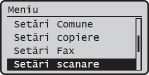Toate setările pentru scanare sunt listate cu o scurtă descriere. Setările implicite sunt marcate cu un semn (
